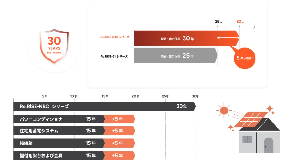 新たに発表されたRe.RISE-NBCシリーズは製品保証30年・出力保証30年を実現。